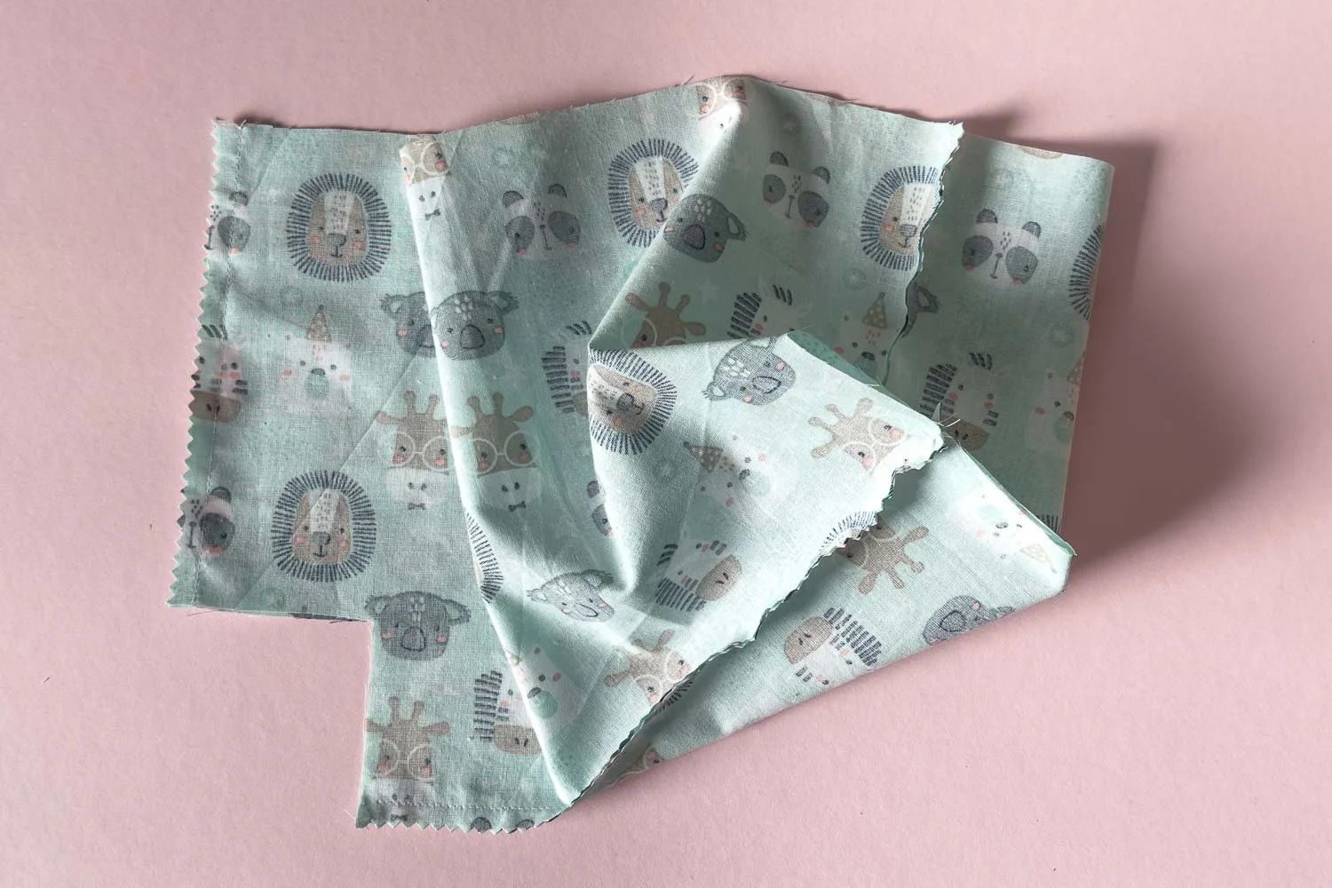 Schneide zunächst das Teil A zweimal aus dem Außenstoff mit Muster zu. Achte hierbei auf die Musterrichtung, damit die Tiere nicht auf dem Kopf stehen.